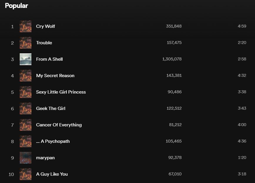Top 10 most popular Lisa Germano songs according to Spotify, February 2023