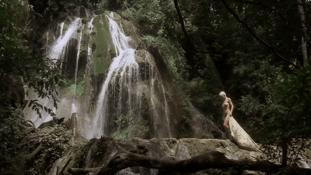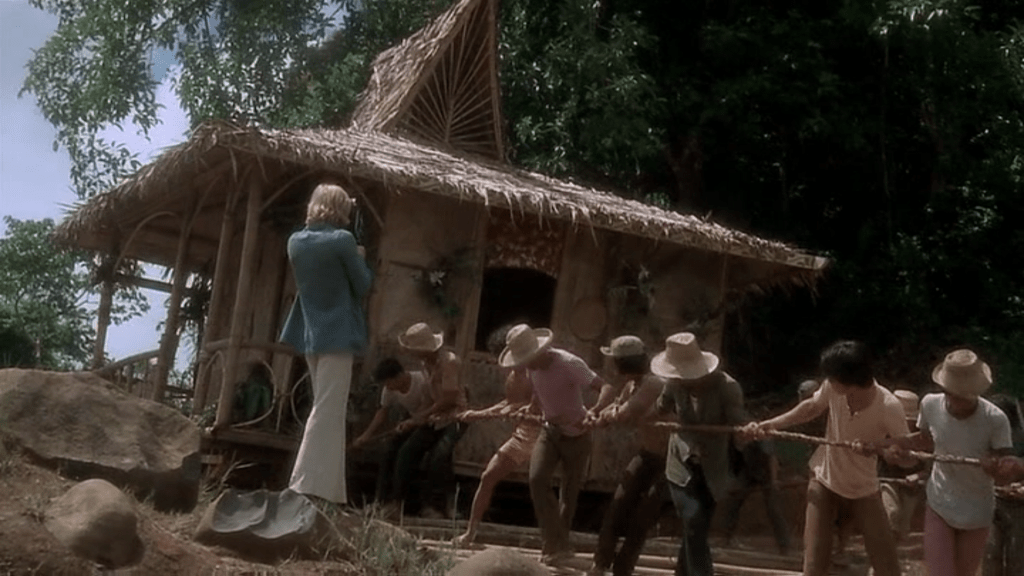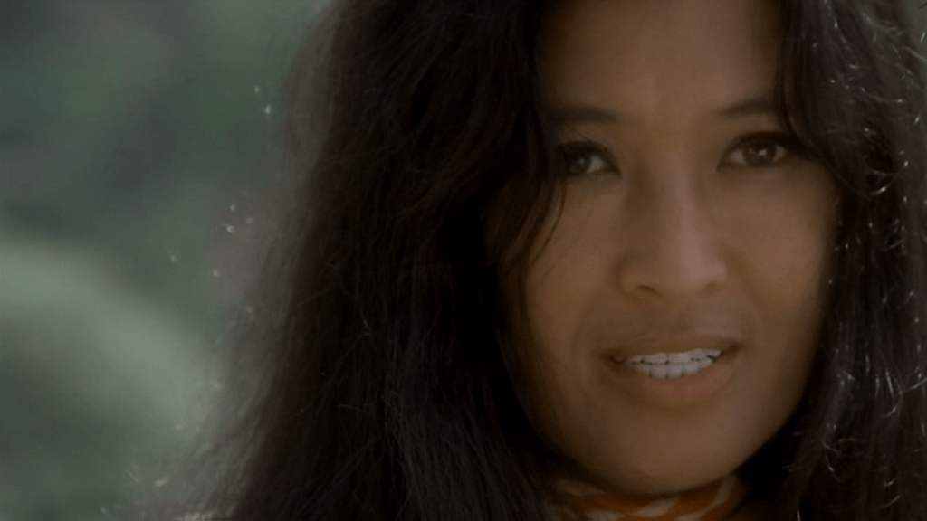 Everything about the troubled production melts away when you actually sit down and watch the film. Laure is a strange, beautiful, mysterious, and if you let it, haunting film. Gone is the travelogue aspect of Joe D’Amato’s Black Emanuelle films, as Laure takes place entirely in Manila and the island jungles surrounding it. D’Amato’s films often slide into the intentionally perverse; Laure is more interested in people talking about sex than actually having sex. Arsan’s goal of creating a less “sleazy” and more meditative take on her original Emmanuelle text won out. Arsan, who had done a little acting prior, appearing in a bit part for the American production, The Sand Pebbles, but was not a trained actor4, is the co-star of the film, a sort of omniscient narrator, a wise “native” woman who knows something about the ancient, special form of love that modern man has lost touch with.