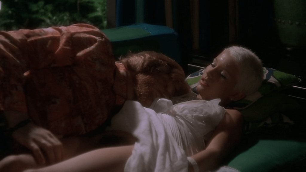 Al Cliver will likely be a more familiar face to those who have watched any Italian genre films from the late 70s and 80s, as he collaborated with everyone from Lucio Fulci to Joe D’Amato to Spain’s Jesús Franco. He brings a certain rugged charm to the character of Nicholas, a role that could have easily come off as awkward in the hands of the wrong actor. Instead, his true love for Laure and genuine happiness at watching her find pleasure in the unconventional, is really sweet.