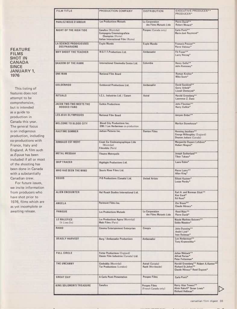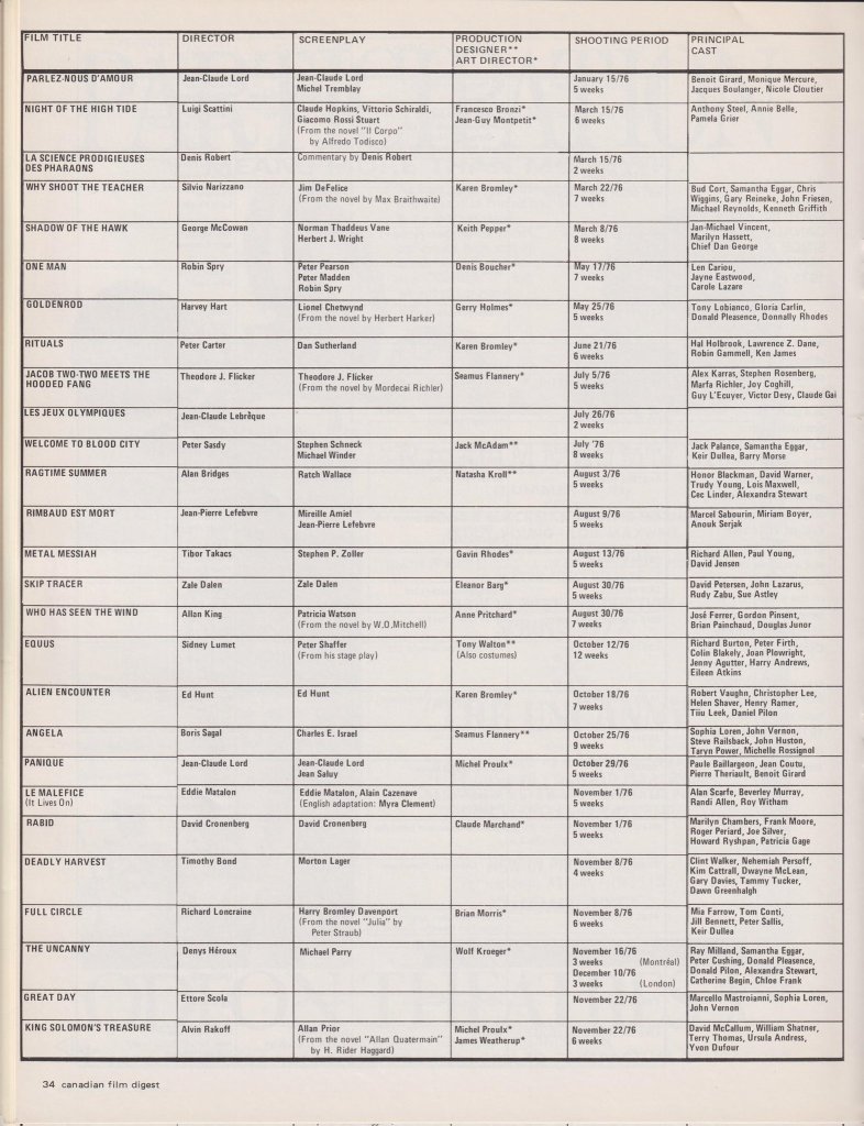 Update 10/5/25: Albert Roubi of The Annie Belle Fan Blog confirmed with images from Canadian Film Digest (Dec. 76) that film production began March 15th, 1976 for a period of six weeks.